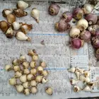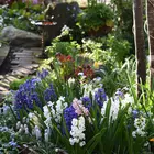 ヒアシンスはチューリップやスイセンなどと並んで、春の花壇を彩るポピュラーな秋植え球根です。葉と花とのバランスがよく、均整のとれた草姿でボリューム感もあり、強い香りを漂わせます。ギリシャ神話にも登場し、古くから観賞されて数多くの品種がつくり出されてきました。日本では、10品種ほどが栽培されています。野生種の花は青紫色ですが、園芸品種は花色も豊富です。主にオランダで育成され、ダッチヒアシンスと呼ばれています。球根の表皮が花色と同じような色なので、球根を見るとおおよその花色がわかります。通常は1球から1本の花茎が出ますが、大きな球根では、さらに1~2本の花茎が伸びてきます。最近は、何本もの花茎が一度に出て咲く、マルチフローラタイプの品種も育成されています。